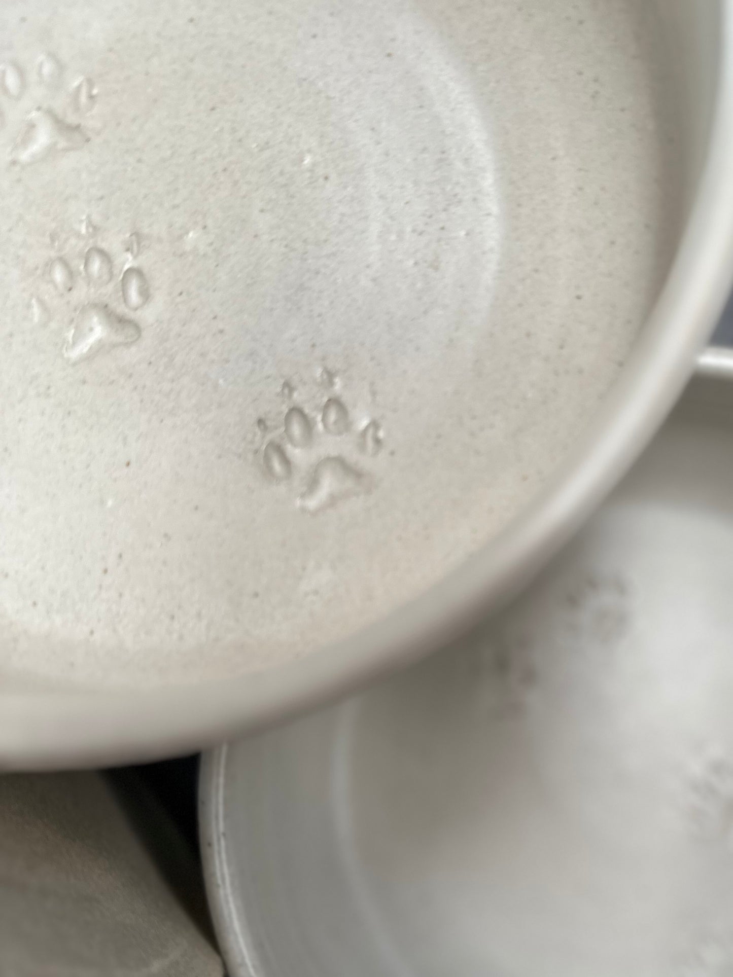 We figure that your furry pal's bowl is mostly empty...so we have put the paw prints running on the inside! With matching storage jars...obviously (which also are perfect for tea/coffee/sugar...just saying..)